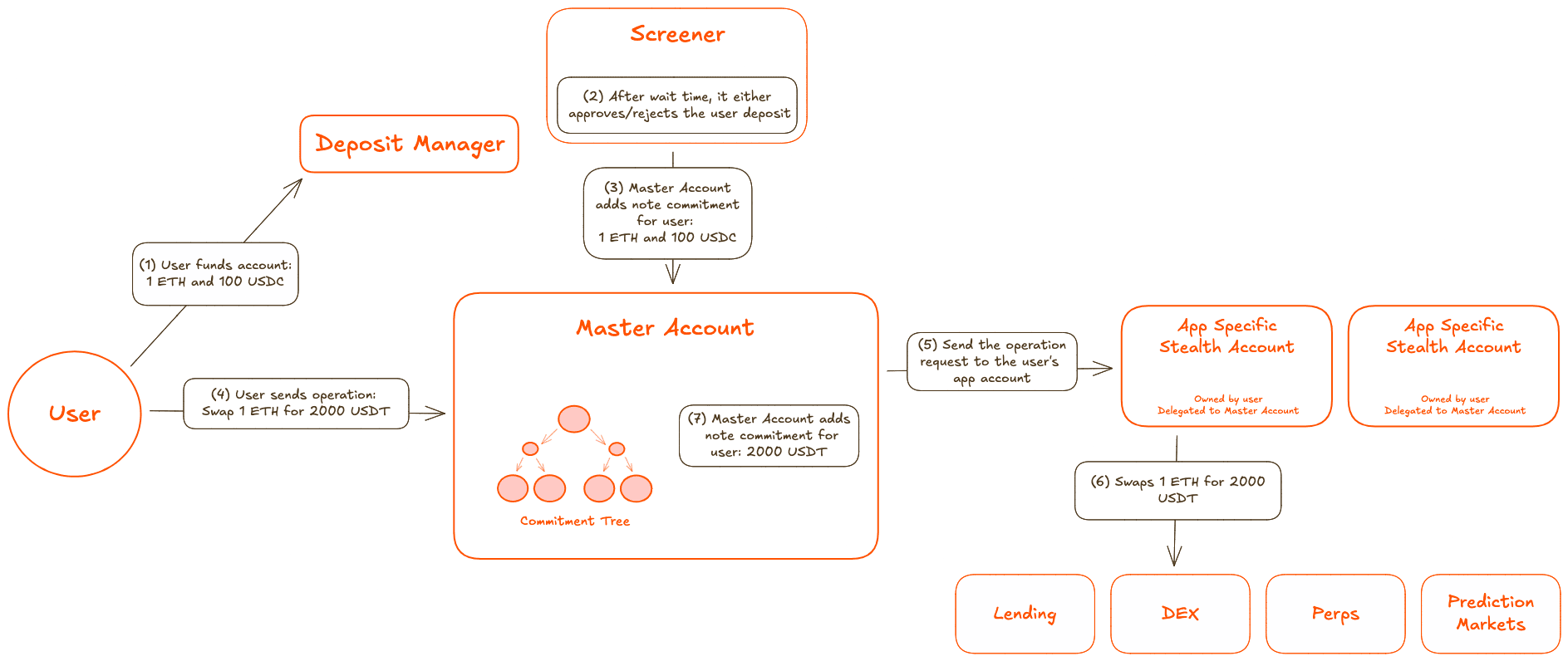 - Asset custody: Holds all deposited funds in the shielded pool